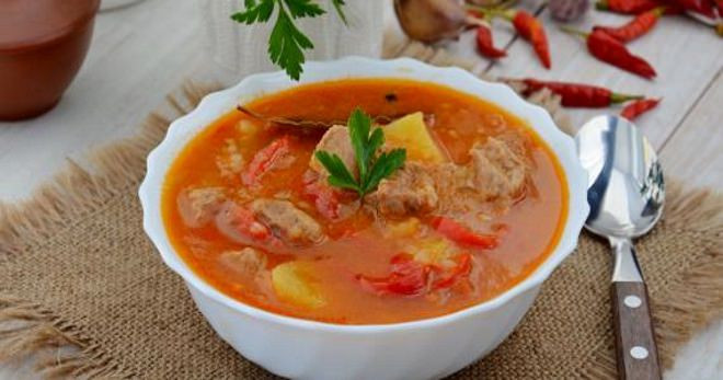 Дальше идут разнообразные варианты приготовления. В суп прибавляют овощи, чаще всего картошку, морковь или фасоль. В качестве базы традиционно берут говядину, однако встречаются типы из свинины, баранины, курицы, а также субпродуктов. Могут досыпаться грибы. Из специй рекомендуются тмин, кориандр, зира, тимьян, абсолютно все виды молотого перца. Для благоухания перед концом варки рубят чеснок и лавровый лист. Редакция “Быстрые рецепты” приготовила для вас самые интересные из рецептов.