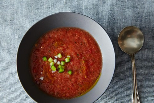 Только представьте: ведь вы можете варьировать состав овощей, заменить уксус лимонным соком, добавить любимые приправы или даже куриный бульон, украсить все это кусочками ветчины и так далее! Словом, разнообразие неописуемое, так что, если гаспачо придется вам вкусу, вам будет чем себя занять. По крайней мере, до конца лета.