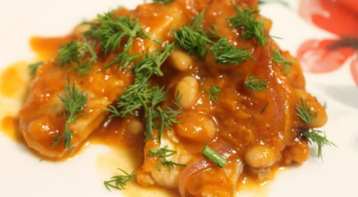 - Положить в чашу рыбу, фасоль, добавить соль и перец, перемешать и включить программу «Тушить» на 20 минут. Подавать с поджаренным белым хлебом.