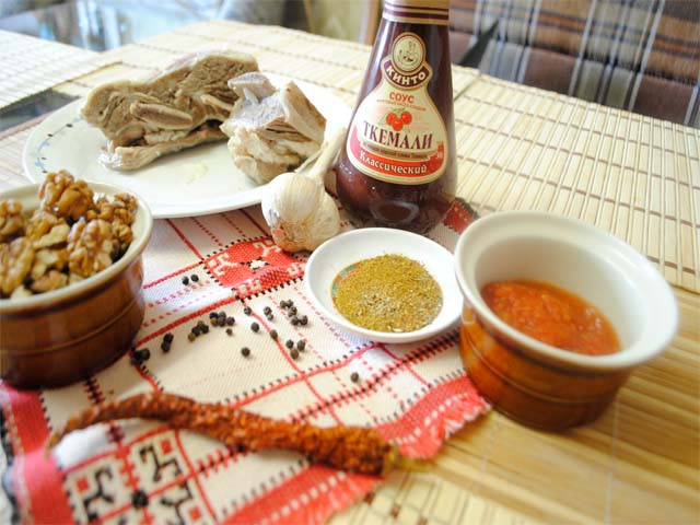 Основой этого супа является специальная кислая смесь – грузинская лепешка под названием тклапи которая производится из недоспевших ягод дерева алыча. Благодаря технологии своего изготовления тклапи именуют алычовым лавашем. Приготовленное из мякоти кизила и слив пюре укладывают специальными пластами и высушивают на солнце. Также прекрасной альтернативой тклапи может послужить своеобразный сливовый соус – ткемали с добавлением ароматного чеснока и специй. Эти базовые ингредиенты являются основой настоящего грузинского кушанья.