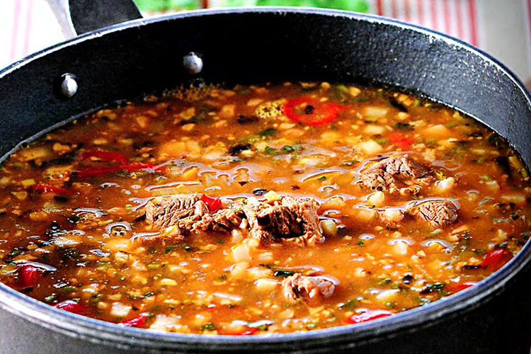 Суп харчо считается традиционным грузинским блюдом. Щедрые хозяйки подают его к столу, желая порадовать гостей. Рецепт первого блюда облетел многие страны и прочно укоренился в кухонной книге многих семей. По традиции харчо готовится на основе говядины с добавлением перца чили. Однако тем, кто не любит острое, можно исключить жгучий компонент. В качестве мяса хозяйки используют свинину, курицу и баранину, всё зависит от личных предпочтений. Каждая семья в Грузии хранит свою уникальную рецептуру данного кушанья. Предлагаем Вам тоже порадовать близких сытным обедом, который берет истоки из грузинской кухни.
