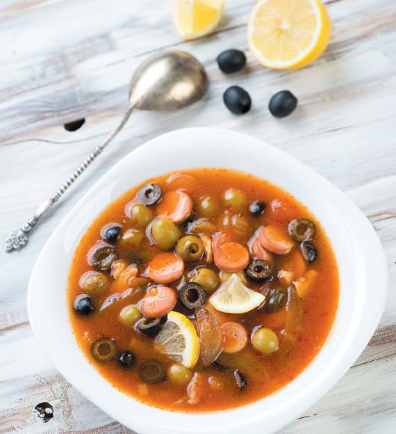 Впрочем, из пары-тройки мясных продуктов солянка тоже получится вкусной. Рецепт обязательно включает в себя маслины и лимон. Солянка будет ароматнее, если добавить в рецепт каперсы. Это беспроигрышный рецепт даже для самых привередливых гурманов. Попробуйте приготовить это блюдо и пусть солянка порадует ваших близких.