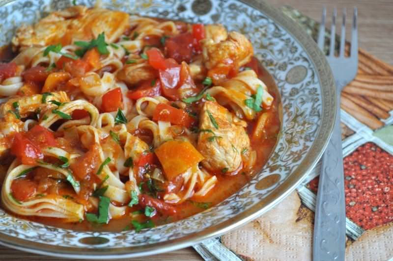 Лагман из курицы и свежих помидоров