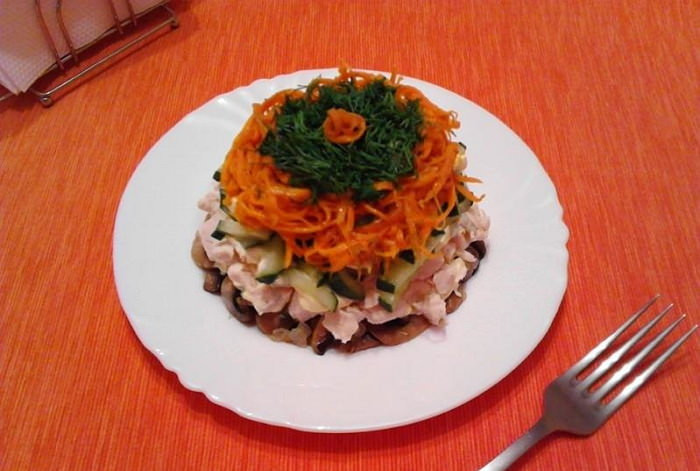 Салат Восторг с грибами и корейской морковью