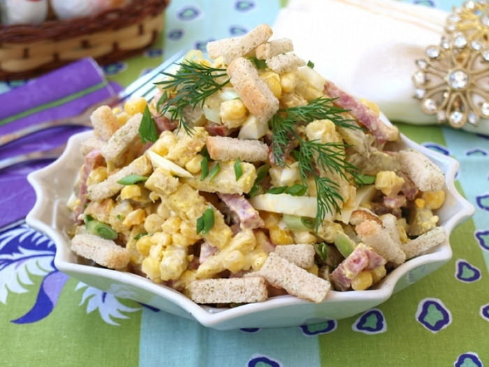 Cалатик с сухариками и кукурузой