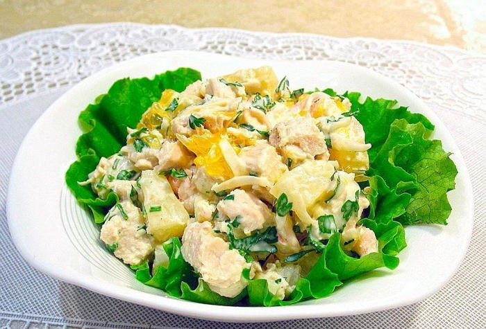 Блюда, содержащие в себе ананасы, можно смело называть гурманскими изысками. Сегодня из этого фрукта готовят не только десерты и соки, но и сытные салатики. Рецепт готовки салата с ананасами сочетает в себе самые разнообразные ингредиенты: и куриное мясо, и пекинскую капусту, и морепродукты. Всего не перечесть. Перед добавлением ананаса в салат стоит определиться с тем, какой вкус желаете почувствовать в готовом блюде.