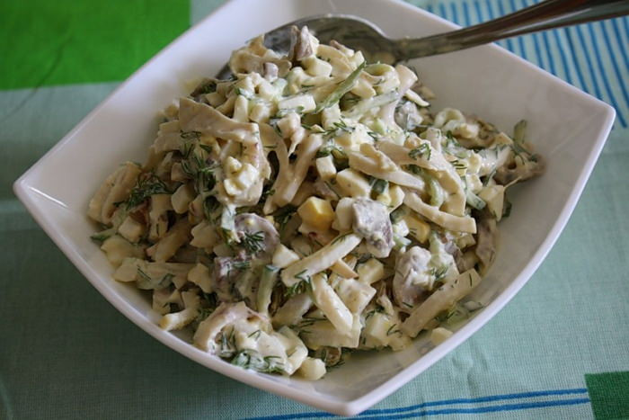 Салат с копченой курицей и грибами