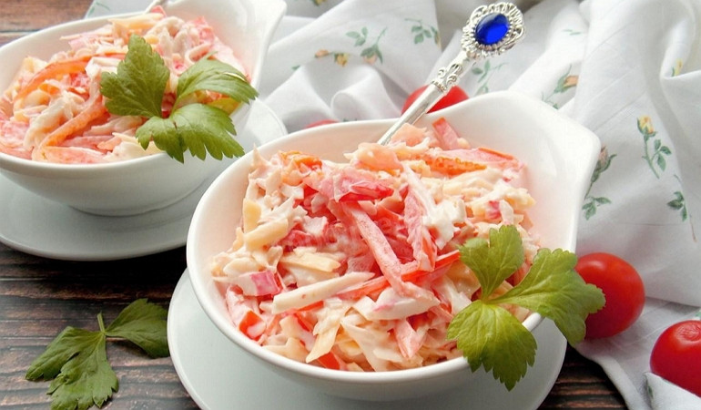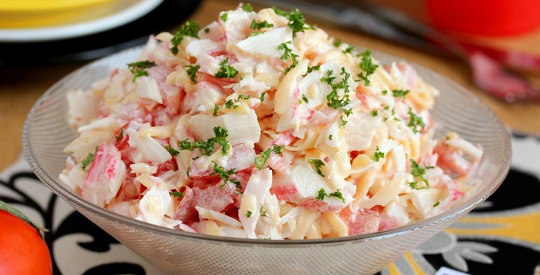 Салат из крабовых палочек с помидорами – вкус и простота!