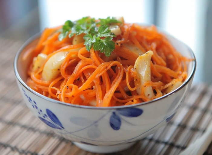 Острый салат из моркови с чесноком