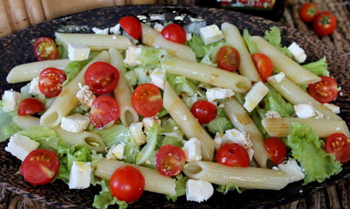 Макаронный салат с брынзой и маслинами