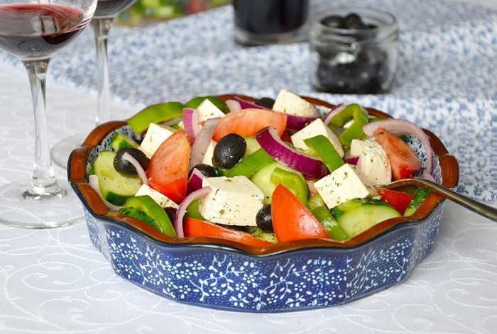 Греческий салат с брынзой по-домашнему