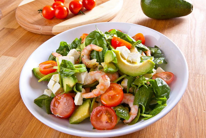 - Салат с креветками и авокадо готов по желанию его можно подать с рисом.