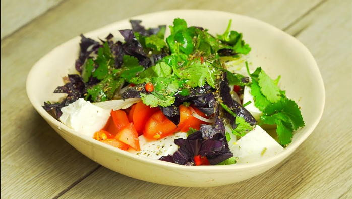 Салат с адыгейским сыром и помидорами, по-сицилийски