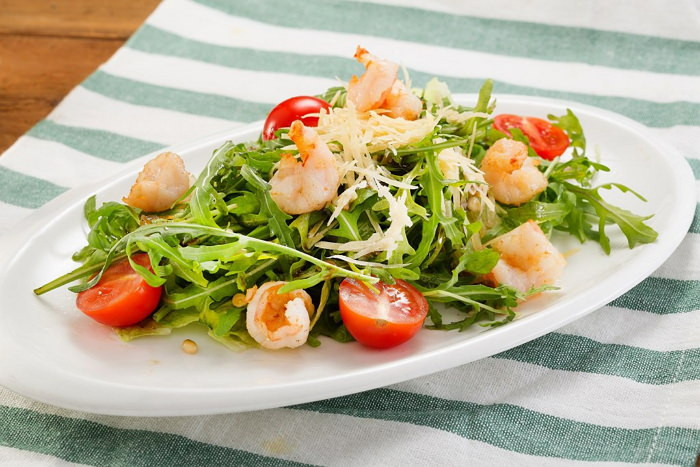 Вторым основным ингредиентом салата являются креветки и этот факт снова переносит нас в теплые морские страны, в которых употреблять морские продукты – традиция, и это, во-вторых. Наличие сразу двух составляющих одного блюда в одном регионе, таким образом, вполне могло способствовать появлению этого замечательно вкусного и полезного салата. Конечно, каждый видоизменяет состав салата, ориентируясь на свои вкусовые пристрастия, в него добавляют орешки кедровые, сыры, часто пармезан, различные овощи, но основные составляющие не изменны – руккола и креветки соединились навсегда, чтобы создать прекрасный вкус и радовать своих поклонников.