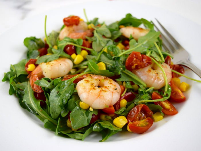 В последнее время здоровое питание вытеснило тяжелые блюда с жирными сортами мяса и майонезом. На смену им приходят свежие салаты с обилием овощей, морепродуктов, нежирного мяса и заправки на основе оливкового масла и лимонного сока. Салат с рукколой и креветками как раз таки относится к здоровому меню. Все ингредиенты сохраняют свою пользу благодаря отсутствию глубокой термической обработки, а добавление растительного масла помогает усваивать витамины и минералы на 20% эффективнее.