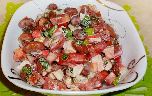 Простой салат из фасоли с ветчиной