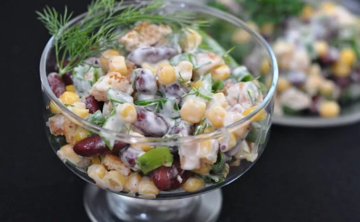 Салат с фасолью, ветчиной и кукурузой