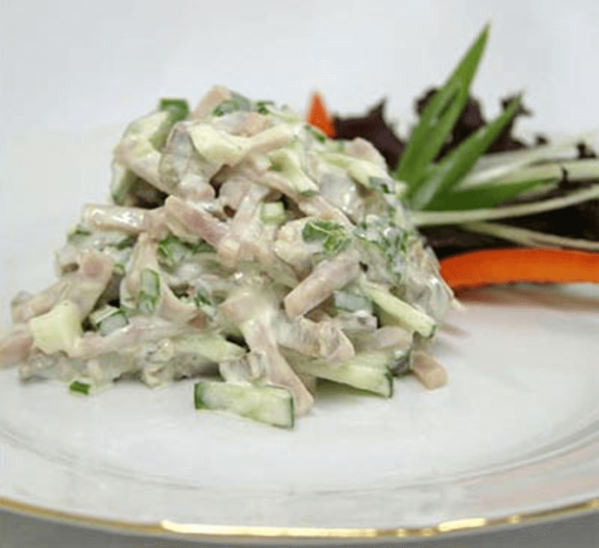Салат с копченой грудкой и кальмаром
