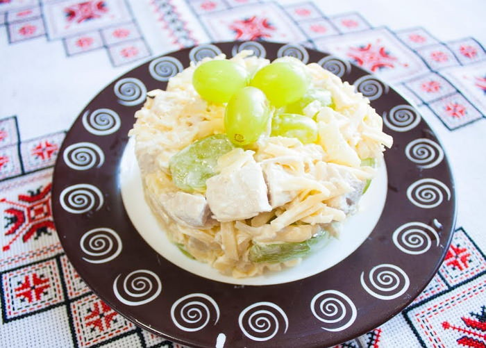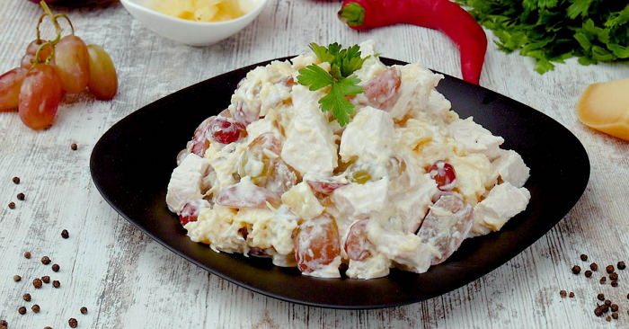 Салат из курицы с виноградом и сыром