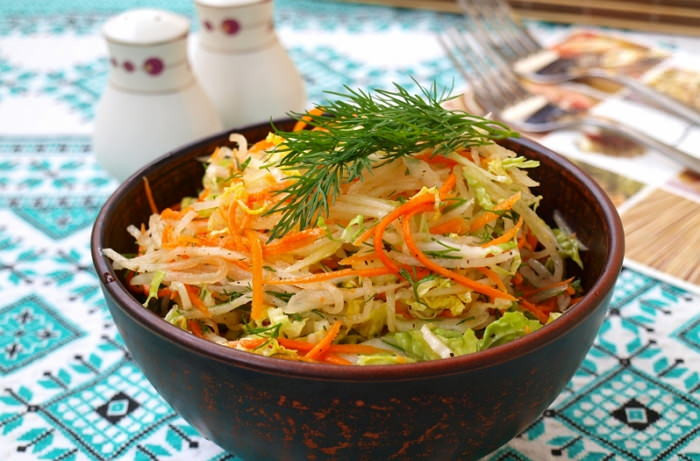 Салат из зеленой редьки с морковью и капустой