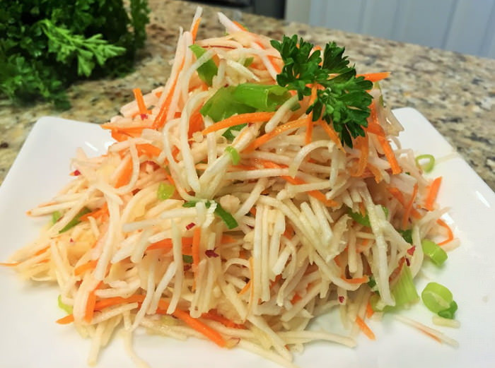Салат из зеленой редьки, с морковью и редькой дайкон