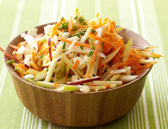 - Салат с редькой по вкусу станет более интересным, если в него добавить сладковатый ингредиент. Например, морковь или яблоко.