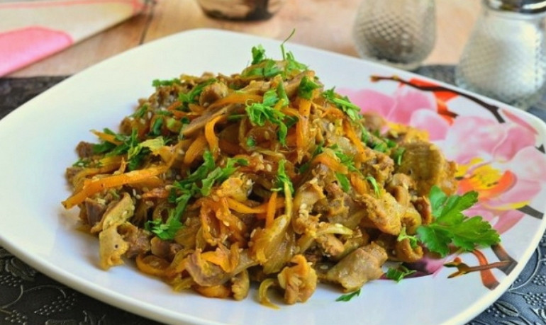 Тёплый салат из куриных желудков по-корейски