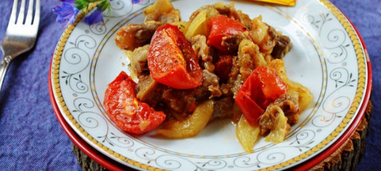 Теплый салат с желудками и овощами