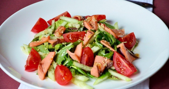 Салат с красной рыбой с давних времен украшает собой праздничные застолья по всему миру. Этот продукт относится к разряду деликатесов и обычно стоит достаточно дорого, поэтому многие отказывают себе в подобном лакомстве. Тем не менее, для вкусного и сытного салата рыбки понадобится совсем немного, достаточно лишь правильно подобрать сопутствующие ей ингредиенты.