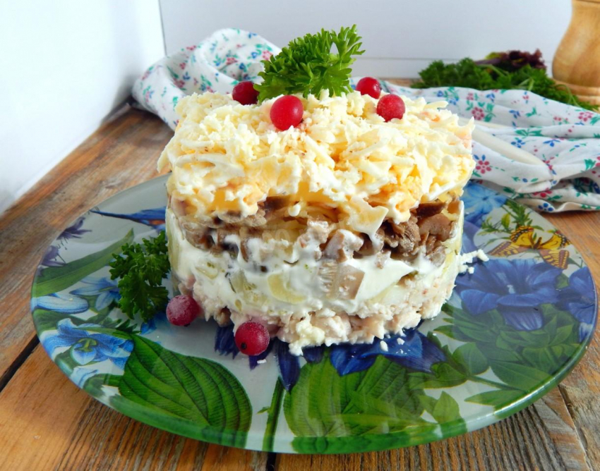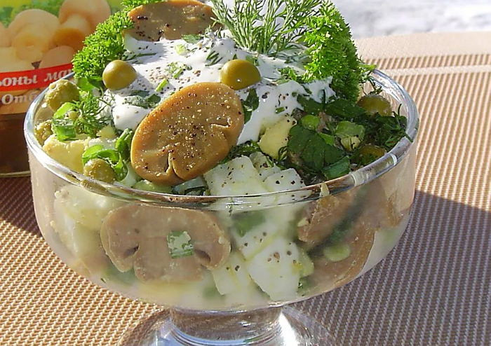Салат с консервированными шампиньонами – закуска на все случаи жизни