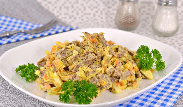 Салат из сердца – это очень простое блюдо в приготовлении, и именно простота рецептуры делает его еще более удачным. Блюдо великолепно дополнит ваше меню и может служить основным блюдом за счет своей большой питательности.