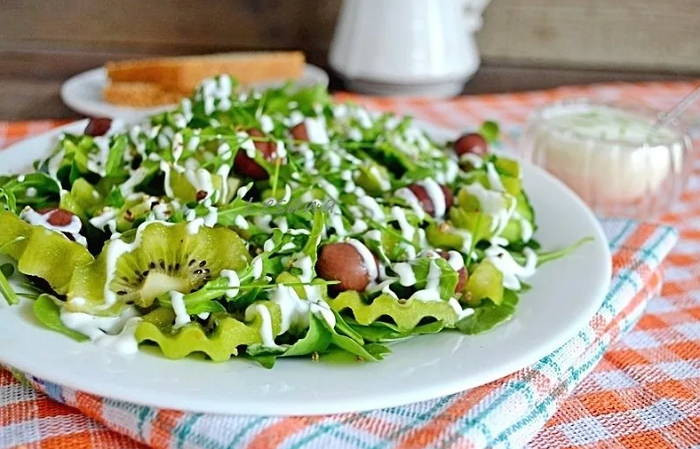 Салат из киви — это без сомнения не только вкусное, красивое, но и полезное блюдо. Несмотря на то, что киви считается экзотическим фруктом, салат с киви — блюдо уже хорошо знакомое многим хозяйкам. Это блюдо украсит праздничный стол, поднимет настроение, подарит заряд бодрости и энергии.