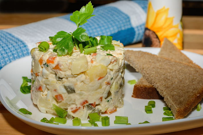 Салат оливье — король салатов. Любой мужчина скажет: нет салата оливье, значит, нет праздника. Рецепт салата оливье имеет много разновидностей, поэтому каждый в зависимости от своих вкусов и предпочтений в еде может выбрать, как приготовить салат оливье.