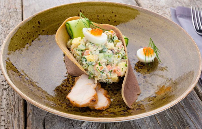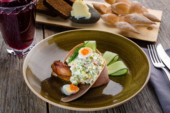 Салат «Оливье», был придуман поваром из Франции в шестидесятые годы XIX века, звали этого человека Люсьен Оливье. Кроме того, что Люсьен был кулинаром, он к тому же владел трактиром «Эрмитаж», который располагался в ту пору на Трубной площади в Москве.