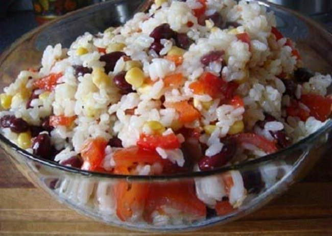 Простой салат с кукурузой и рисом