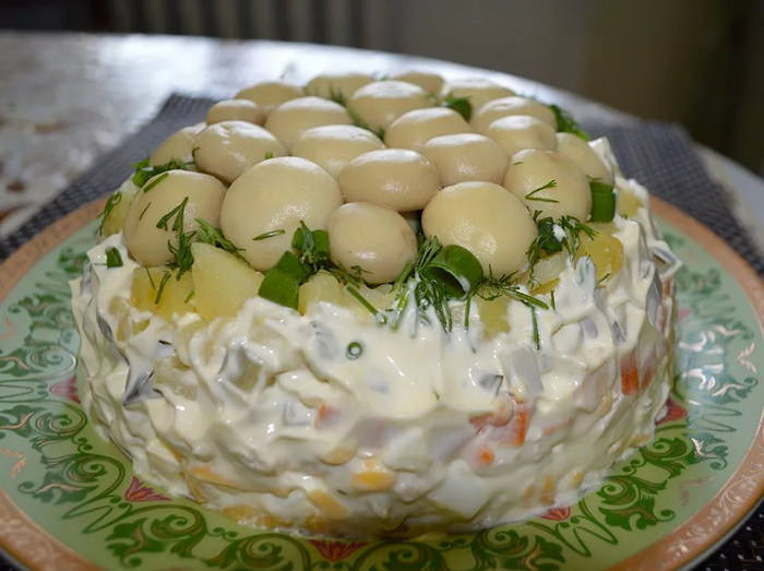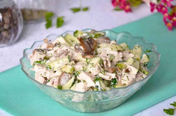 Невероятно простой и вкусный салат с маринованными шампиньонами