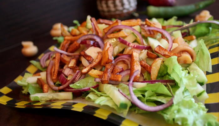 Салат с шампиньонами и картофелем-пай под соевым соусом