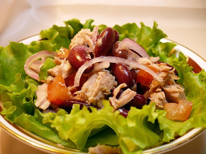 Салат с копченой курицей и фасолью