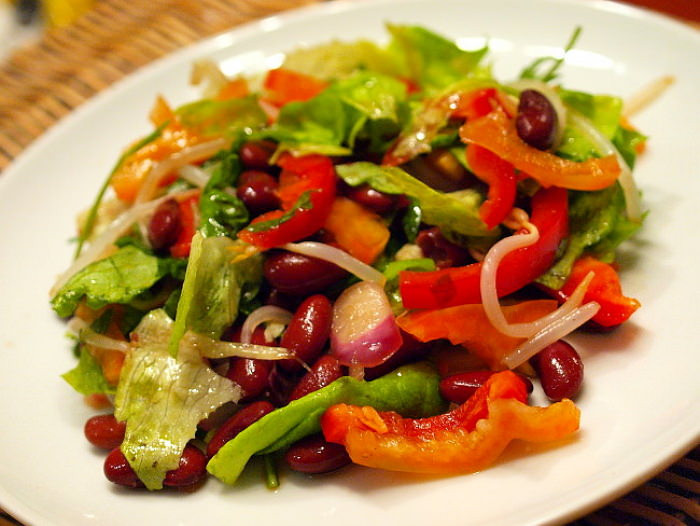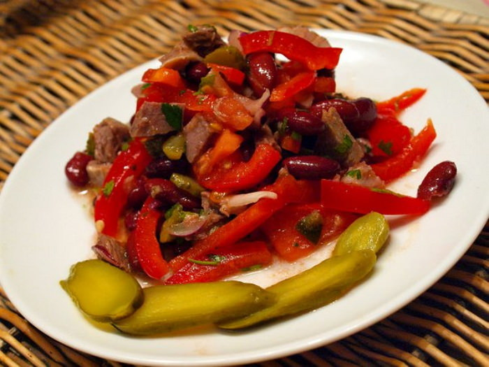 Овощной салат с говядиной и фасолью
