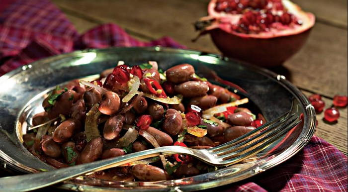 Грузинский салат с фасолью, гранатом и орехами