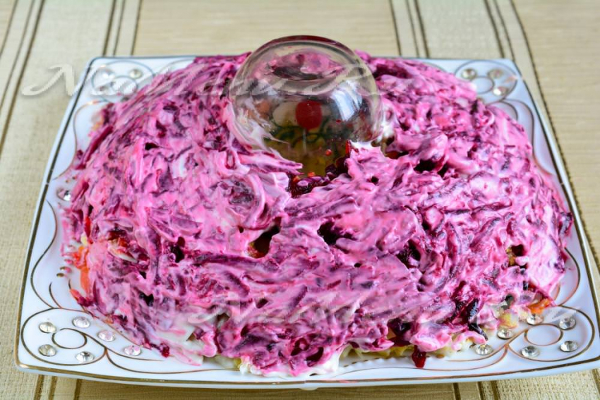 - пятый слой – свекла. Это самый «пачкающий руки» слой.