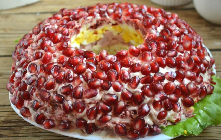 Гранатовый браслет готовят из разнообразных продуктов. Трудно сказать, какой рецепт более классический.С индейкой