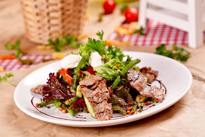 - Чтобы уменьшить пресный вкус салата, используйте для заправки оливковое масло с бальзамическим или винным уксусом, горчицу в зернышках, лимонный сок, чеснок, свежемолотый черный перец, пряную зелень