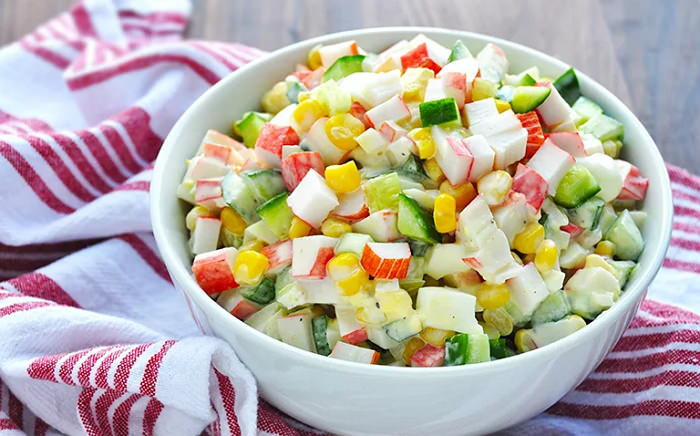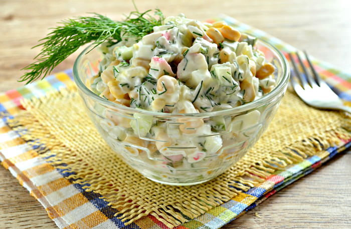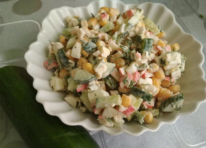 Лучшие рецепты салатов с крабовыми палочками и огурцом