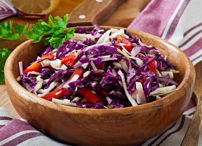 Эту ближайшую родственницу белокочанной капусты называют синей или красной, хотя на самом деле она фиолетового цвета. Синяя капуста – низкокалорийный полезный продукт. Этот овощ богат антиоксидантами и клетчаткой. Ее яркий натуральный цвет сделает ваши блюда как минимум красивыми.