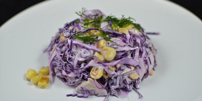 Вкусный салат из краснокочанной капусты с майонезом и кальмарами