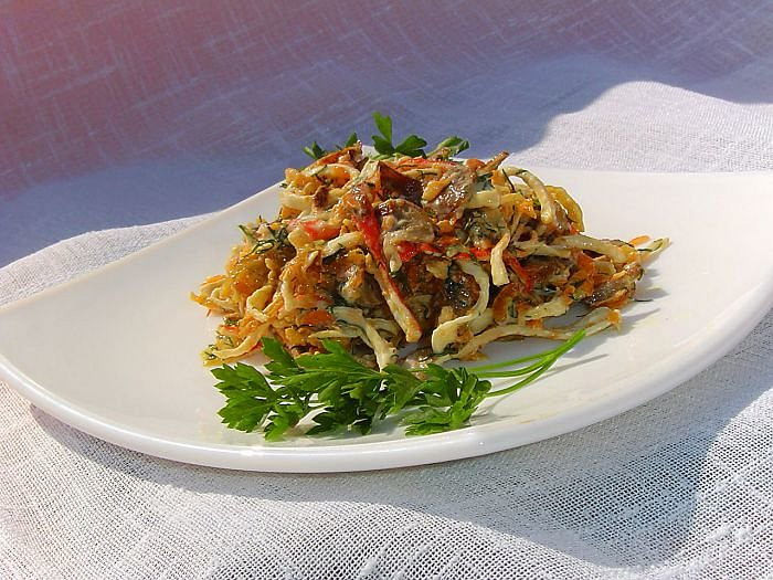 7 чудесных рецептов салата с жареными грибами