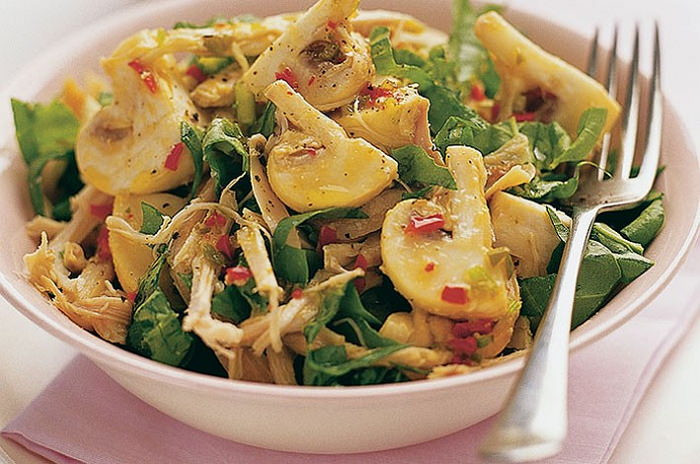 Салат с жареными грибами и курицей