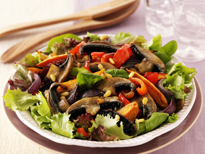 Овощной салат с жареными грибами