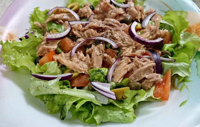 Во многих странах Азии и Европы тунец — это самая популярная рыба. И этому есть хорошее объяснение, мясо тунца чрезвычайно полезное и содержит огромное количество витаминов и аминокислот. Диетические свойства тунца тоже давно оценили по достоинству все приверженцы правильного питания и здорового образа жизни. Для желающих похудеть — тунец это просто находка. Даже, если не строить каких-то планов по оздоровлению, то салаты с тунцом — это в первую очередь вкусно.